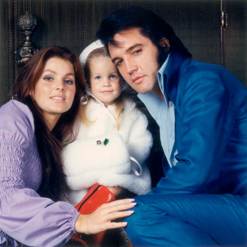 Elvis Presley with his wife, Priscilla (left), and daughter, Lisa Marie (center)